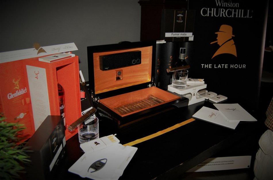La cena terminaba y tomó la palabra Miguel Escandell para hablarnos del primer whisky que cataríamos esa noche, el GLENFIDDICH 21 años. Una cata con el whisky solo, por supuesto. Los que somos apasionados del ‘agua de vida’, y en espacial de los single malt, se nos veía reflejadas lágrimas de alegría al llevarnos tal manjar a la boca. Junto al whisky comenzábamos con el DAVIDOFF Winston Churchill The Late Hour, en su formato Churchill, donde Gonzalo de León nos mostraba las notas de cata de este excepcional tabaco y las intenciones de Henke Kelner (master blend de la casa y uno de sus máximos exponentes) con este tabaco.