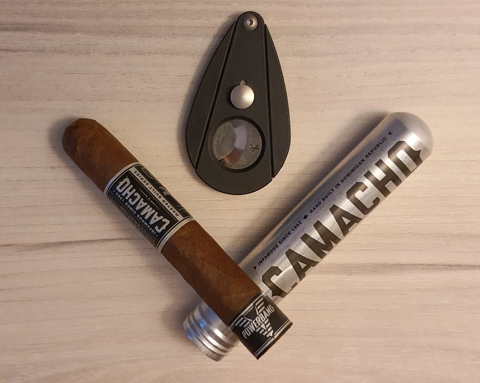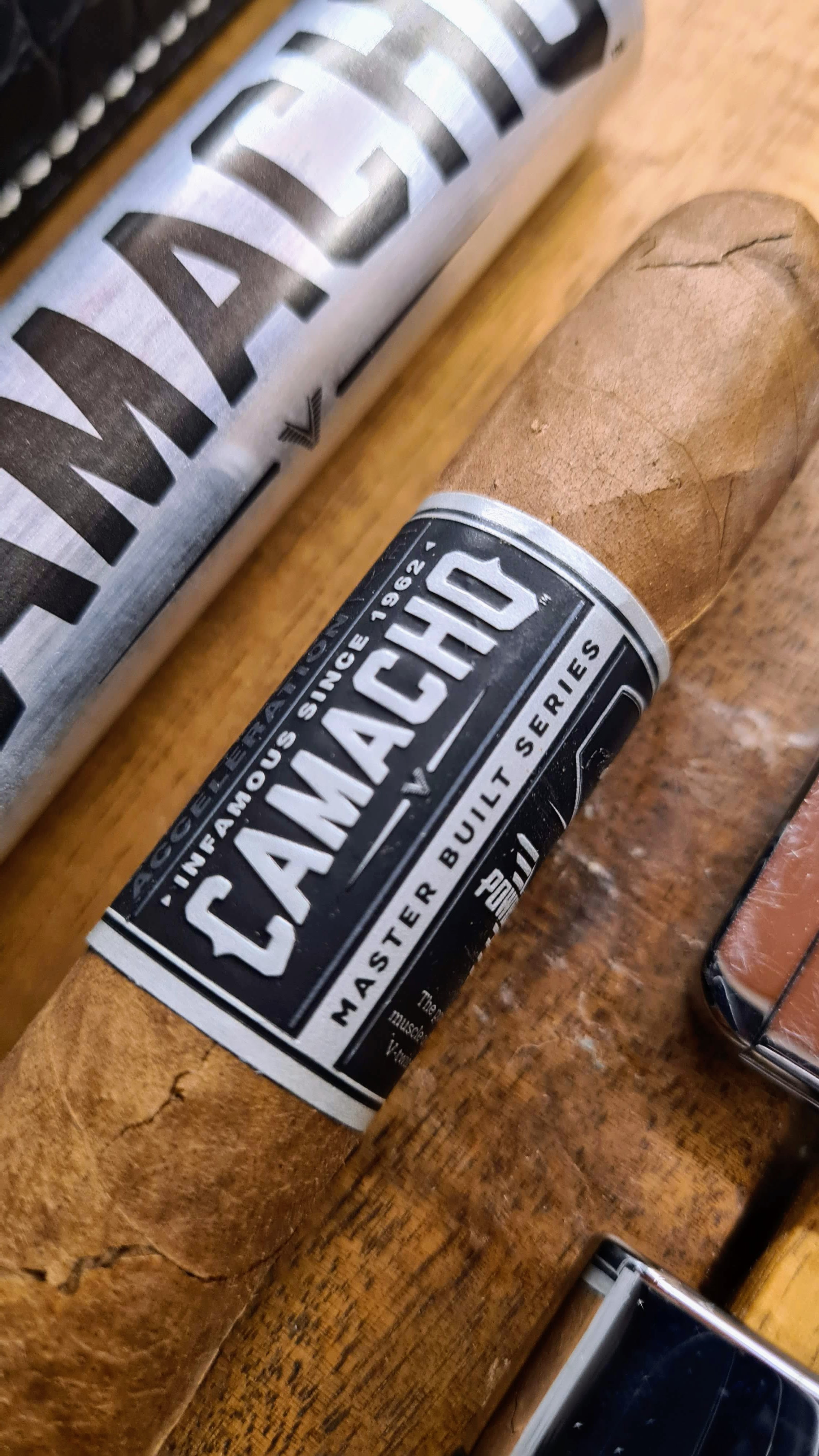 Hola de nuevo a todos, hoy os traemos un tabaco que, por su presentación, podría venderse perfectamente en una tienda de suplementos proteicos. Hablamos en efecto del CAMACHO Powerband. Y es que la presentación nos ha sorprendido mucho, y para bien. Ya sea en un tubo con el aluminio cepillado y sin pintar, o por su doble anilla negra y gris, recordando al acero o al aluminio, es un tabaco que destaca.