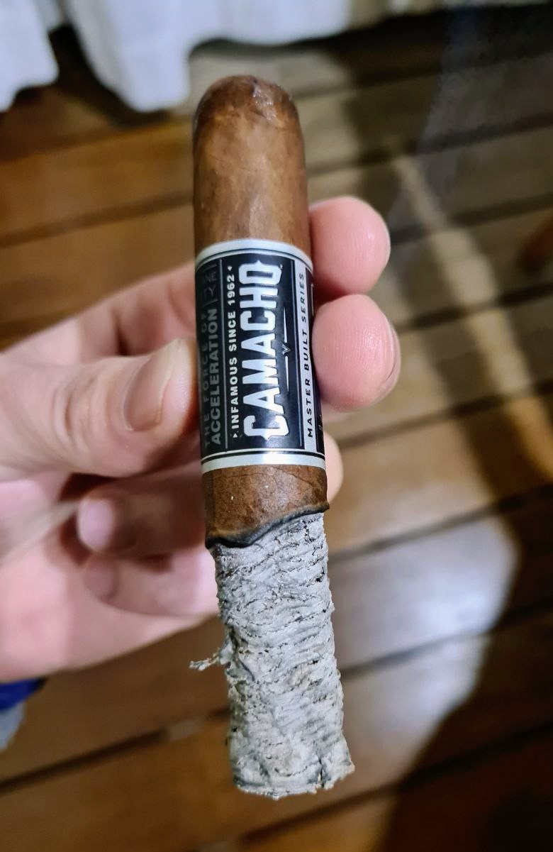 La ceniza es gris clara, casi sin roda y con un aguante medio, y el humo abundante, blanco y aromático, aunque quizás algo ligero.