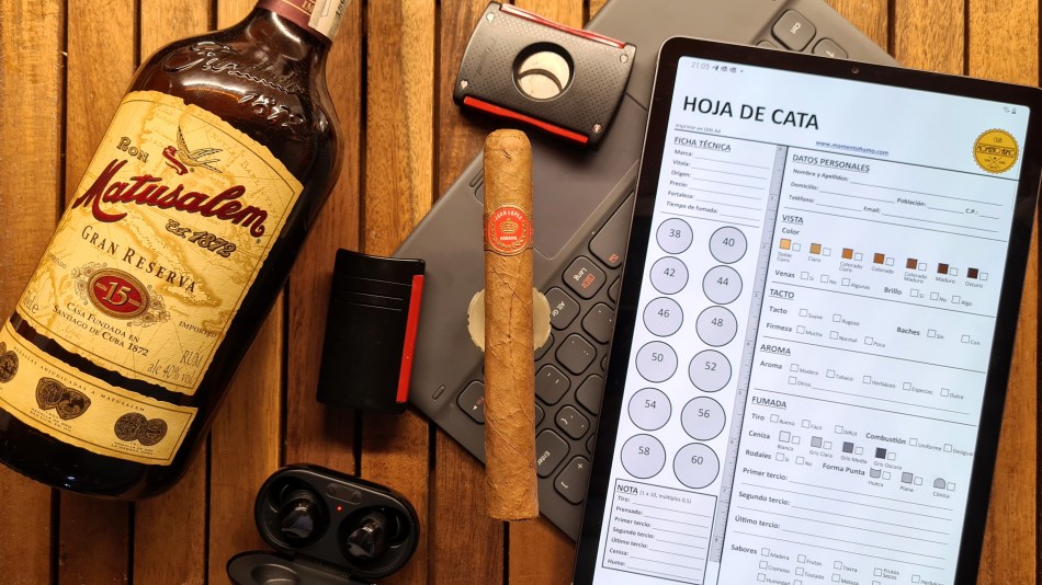 Una vez examinado el tabaco «en frio», y dispuestos los correspondientes maridajes y preparativos, iniciamos el ritual de corte y encendido, o encendido y corte según la preferencia del fumador, y notamos unas primeras caladas dulces, florales, con ligeras notas picantes y toques de cedro.