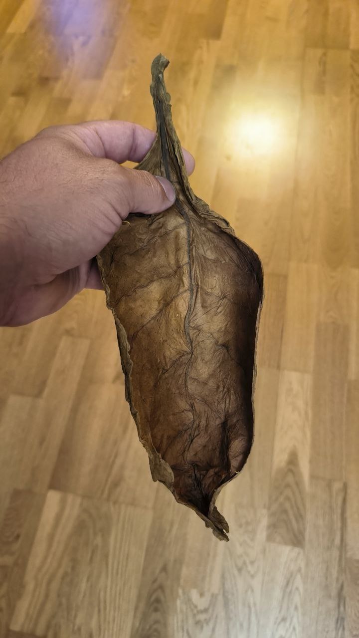 Ya que muchos de ustedes se lo estarán preguntando, el propio Óscar nos comentó el origen del tan llamativo envoltorio. La planta de tabaco, como bien saben ustedes, se divide en diferentes pisos foliares, cada cual con sus respectivas características organolépticas, grosor, tamaño y uso. Para envolver el puro, se utiliza tabaco volado (parte baja de la planta que suele estar algo dañada por el quehacer del agricultor y la vida misma del especimen). Esta hoja se fermenta durante tres meses para quitar gran parte de la grasa que contiene y evitar que afecte al tabaco que abraza y, si se abre con cuidado, puede utilizarse como adorno o bonito recordatorio.